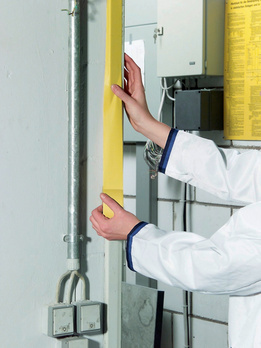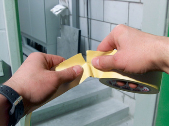 Masking tape for protecting smooth surfaces during painting, plastering and varnishing both indoors and outdoors. The stable connection of the adhesive and the backing film allows residue-free removal.